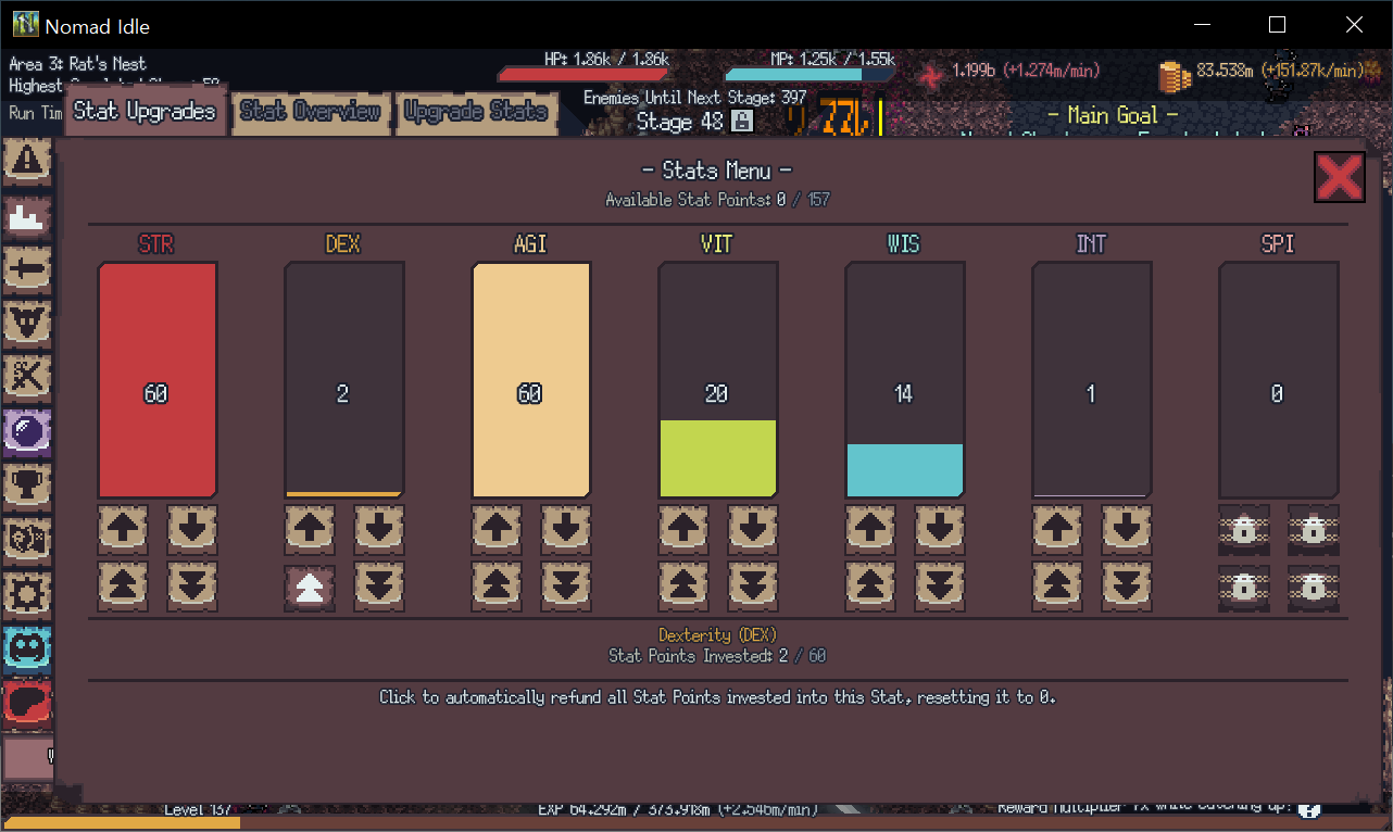 게임이 진행됨에 따라, 크리티컬 확률과 이동속도도 중요한 역할을 하게 됩니다. 특히 전투에서 더 많은 성장을 얻기 위해 이동속도 강화하는 것이 필요합니다. - 민첩(DEX) : 쿨다운 시간을 줄이고 스킬 효과를 증가시킵니다.